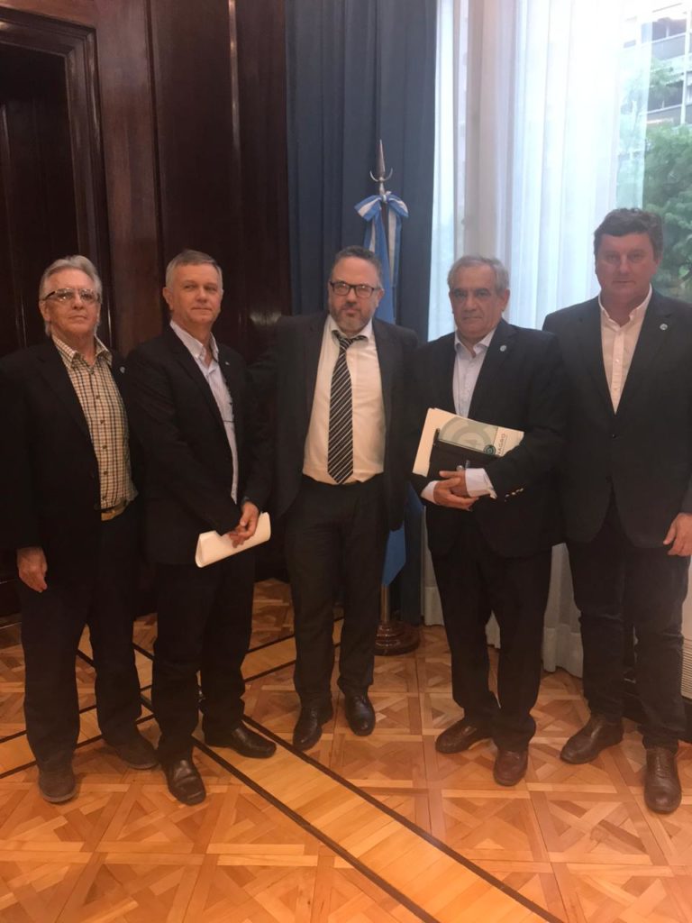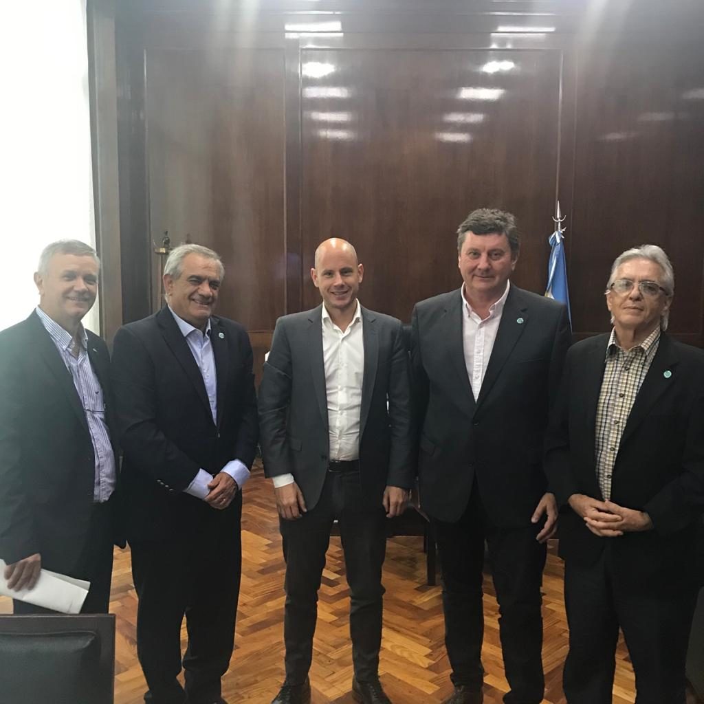 Los dirigentes de Coninagro junto a Guillermo Merediz, Secretario de la Pequeña y Mediana Empresa y de los Emprendedores, dependiente del Ministerio de Desarrollo Productivo.