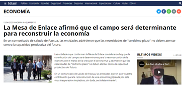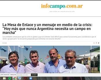 A pedido de los presidentes de las entidades todas las semanas los comunicadores estamos realizando reuniones para establecer estrategias y una agenda activa de la MESA DE ENLACE. En ese sentido se envió un borrador de propuestas y comenzaron las acciones en los medios como ya se hacía en otras oportunidades con el consenso de todo el equipo.