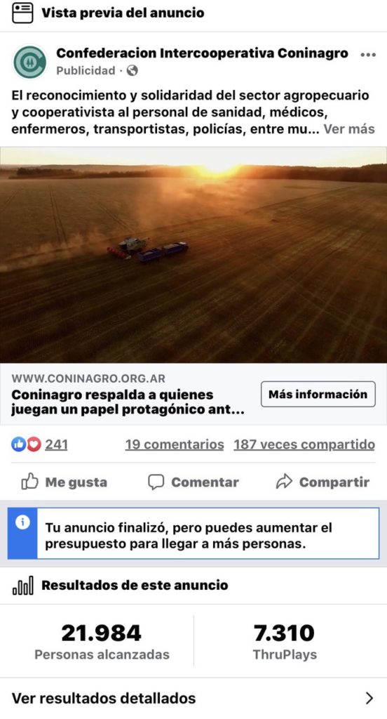 El video que fue eje de una campaña de redes sociales por parte de la entidad, aún sigue vigente ya que continúa la emergencia sanitaria y el aislamiento obligatorio. Por lo tanto, pueden seguir compartiéndolo. La campaña paga arrojó resultados como estos: sólo en facebook el anuncio alcanzó a casi 22 mil personas, en tanto que en el caso de ThruPlay, que es una opción de optimización y facturación de los anuncios con video basada en el objetivo de reproducciones de video, superó los 7 mil. Si les interesa conocer más detalles y estadísticas, no duden en contactar al área de prensa y comunicación.
