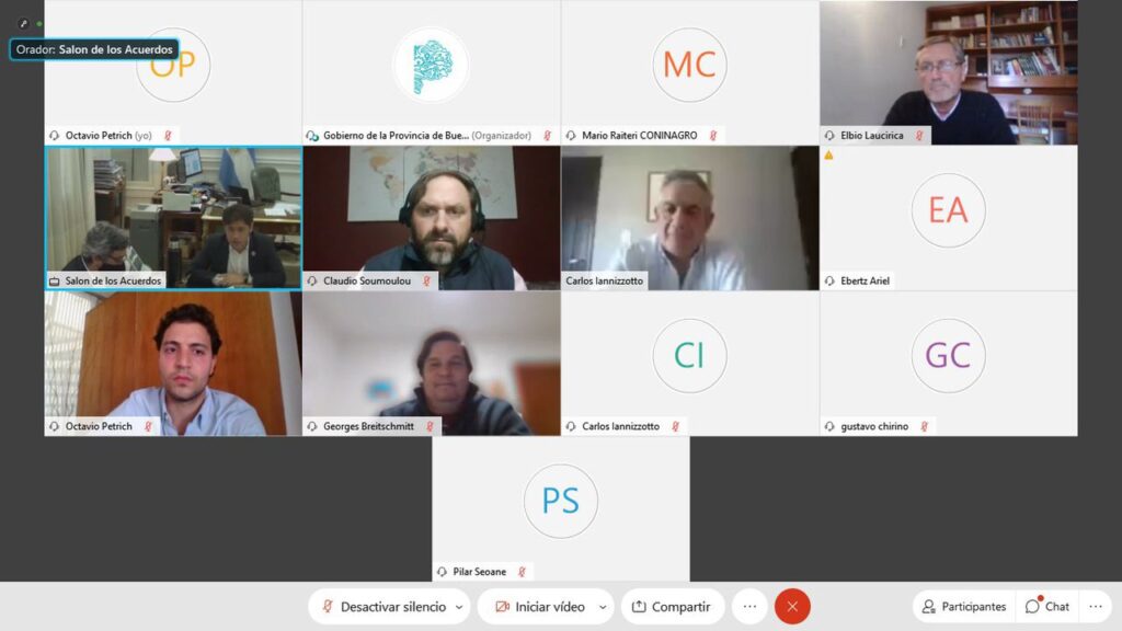 El presidente de Coninagro, Carlos Iannizzotto, mantuvo una reunión por videoconferencia con el Gobernador de la Provincia de Buenos Aires, Axel Kicillof, que estuvo acompañado por el Ministro de Desarrollo Agrario de la Provincia, Javier Rodríguez.