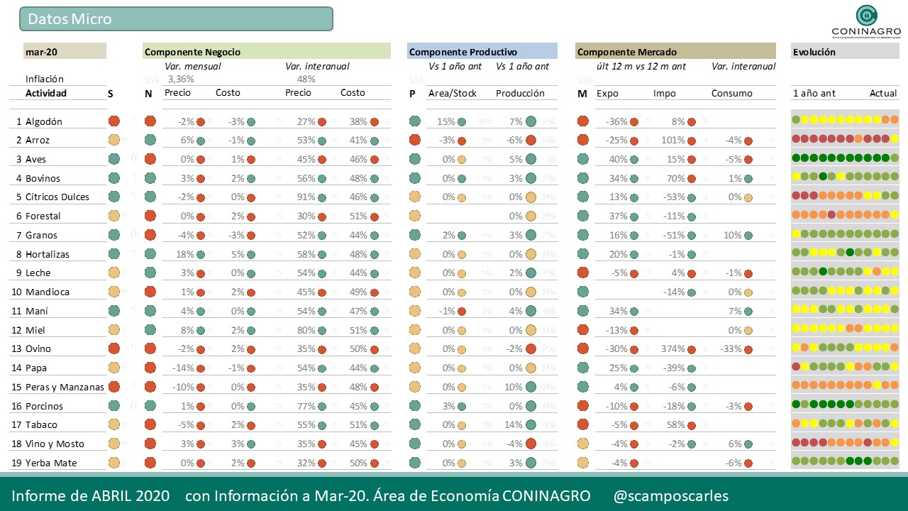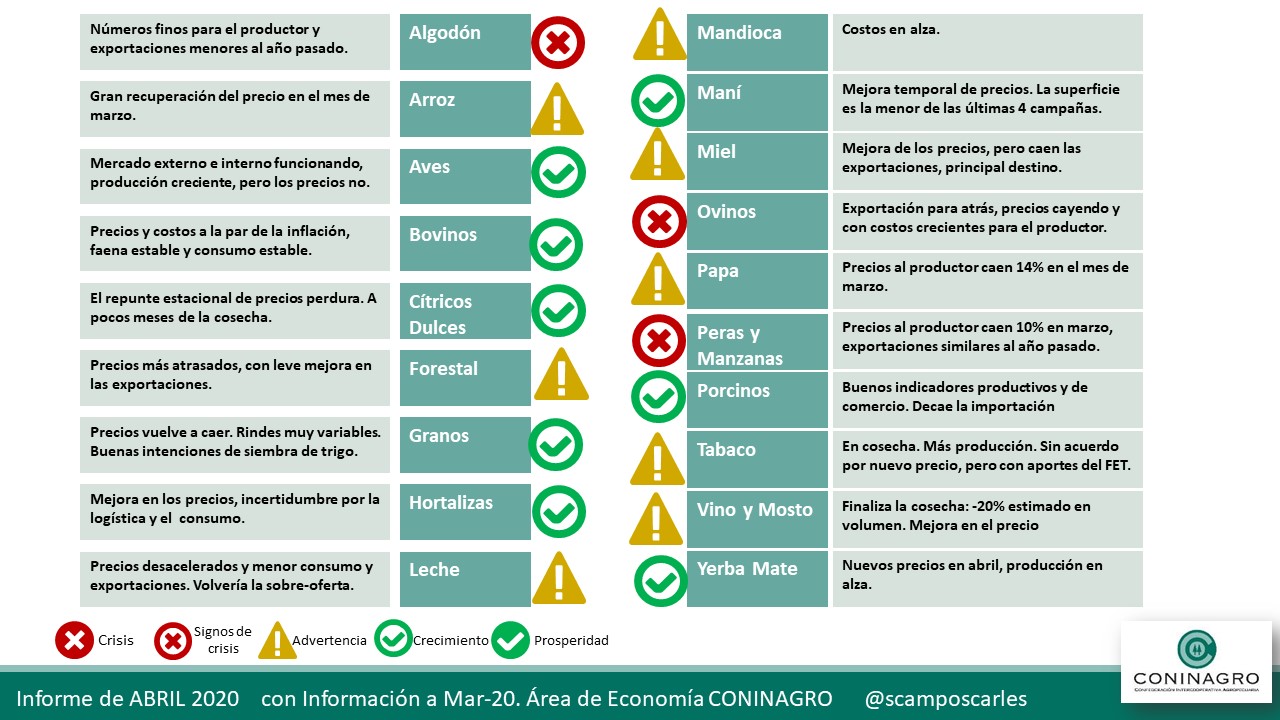 Mirá en detalle el relevamiento de las 19 economías regionales monitoreadas por CONINAGRO, con cifras que surgen del análisis realizado durante el mes de marzo de 2020. Esta herramienta busca simplificar la complejidad y heterogeneidad de la producción en el campo hacia una herramienta visual de análisis.