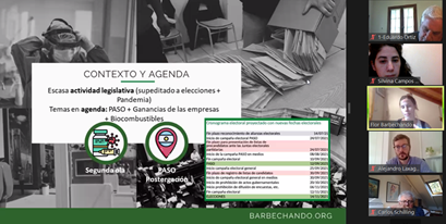 En la reunión mensual de intercambio, coordinado por Barbechando, se trabajó respecto de la agenda del Congreso de la Nación: biocombustibles, cambios en la fechas de las PASO, cambios en las alícuotas del impuesto a las ganancias, las iniciativas de incluir los delitos ambientales en una ley especial y el tratamiento de la ley ovina. De esta mesa técnica participa por Coninagro la Lic. Silvina Campos Carlés.