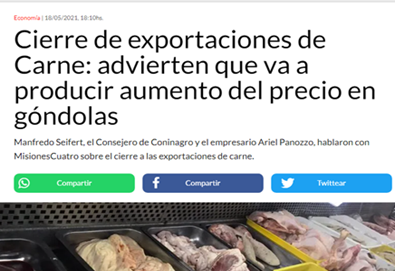 Con motivo de conocer la situación y el contexto de cada día,  monitoreando el cese de comercialización de carnes, se realizó un encuentro de la Mesa de Carnes de Coninagro junto al presidente de la entidad para analizar y observar datos; conocer como impacta este cese, sus derivaciones negativas y posibles soluciones o acuerdos a futuro.
