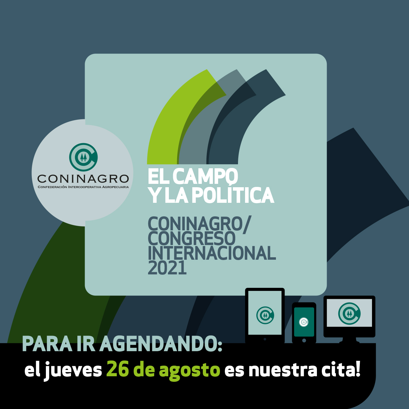 El Congreso Internacional 2021 de Coninagro ya tiene fecha. El evento se realizará el 26 de agosto bajo la modalidad streaming, desde las 17.30. Las temáticas elegidas serán: “La Política”, a tono con el contexto pre-electoral signado por las elecciones de medio término, donde el campo apuesta a sumar representatividad en el Congreso de la Nación.