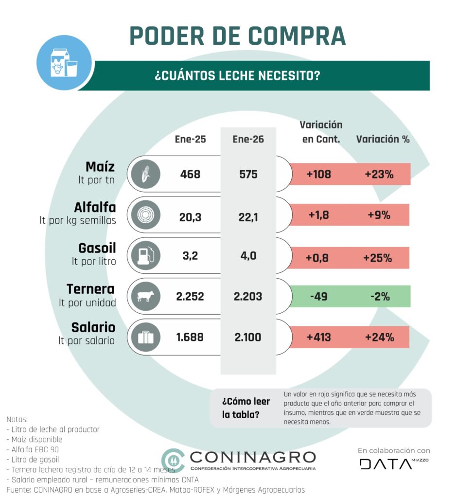 La relación insumo-producto en el trigo muestra un deterioro significativo, especialmente en la logística, donde la incidencia de los fletes ha alcanzado máximos históricos. Para un recorrido de 300 km, el costo del transporte se lleva el 21% del valor del trigo, la cifra más alta registrada en los últimos años. Asimismo, el poder de compra del cereal frente al combustible ha caído drásticamente: en comparación con el promedio de los últimos cinco años, el productor necesita hoy un 55% más de trigo para adquirir la misma cantidad de gasoil, evidenciando un retroceso en la competitividad.