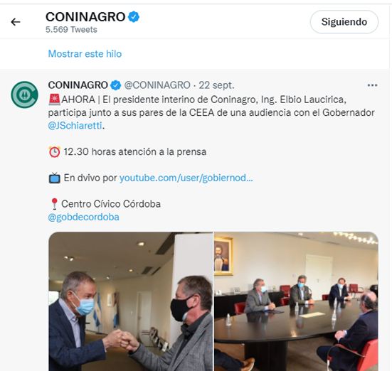 Desde Coninagro se planteó que el porcentaje que se asigna a los créditos del Banco para compra de maquinarias que hoy es del 70% para lograr que sea del total de la compra, esa diferencia que da el usado con el atraso tecnológico entre los pequeños y medianos productores que se representan hace que el valor sea nulo o no permita cubrir el 30% restante. Se busca el 100% de la herramienta a comprar por el productor. También se planteó la necesidad de rever la resolución del Banco Central sobre las complicaciones para el acceso a financiamiento con tasas favorables para productores de trigo y soja. En cuanto a la tarjeta agronación genera intranquilidad la tasa abierta en una de las formas de operar para los pequeños y medianos productores. En cuanto a las EE.RR. se planteó la preocupación de trabajadores temporarios donde se podría contener con una línea de crédito especial para asistir a personas que demuestran que trabajan más de tres meses y rotan de diferentes zonas del país, para mejorar su calidad de vida incluso en viviendas. Por Coninagro participaron Mario Raiteri y Marcelo Espinosa.