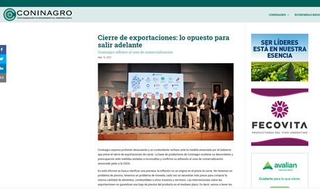 Con motivo de conocer la situación y el contexto de cada día,  monitoreando el cese de comercialización de carnes, se realizó un encuentro de la Mesa de Carnes de Coninagro junto al presidente de la entidad para analizar y observar datos; conocer como impacta este cese, sus derivaciones negativas y posibles soluciones o acuerdos a futuro.