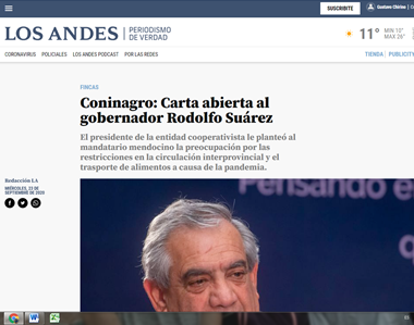 «Hace más de seis meses que tenemos este problema, hay productores y trabajadores que no pueden acceder a sus campos y realizar labores por los conflictos que se presentan en puntos limítrofes, como es el caso Mendoza – San Luis, y otros puntos del país». «Solicitamos que evalúen con prontitud esta situación y que puedan destrabar el problema, tal vez delegar en gobiernos provinciales e involucrando a municipios, pero la responsabilidad de no ponerse de acuerdo en los protocolos está perjudicando a una actividad que es esencial, apelamos al criterio y a la posibilidad de facilitar nuestra labor, cumpliendo las medidas sanitarias lógicas, estamos hablando de mantener una alimentación sustentable y saludable, pero ¿cómo lo vamos a hacer si funcionarios de distintas jurisdicciones tienen criterios dispares y no tienen en cuenta alternativas lógicas?»