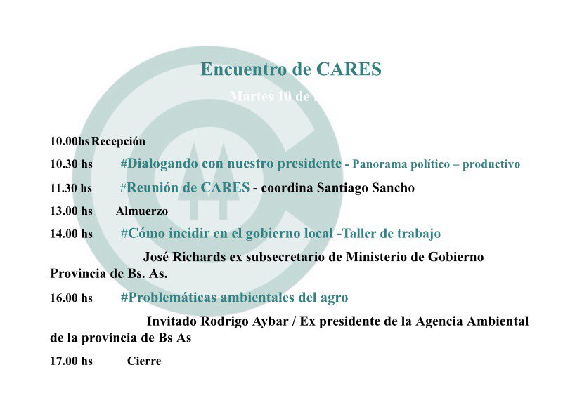 Agenda: reunión de CARES martes 10 de marzo