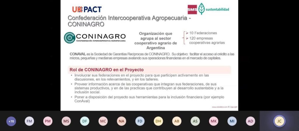 Además, el titular de la entidad que nuclea a las cooperativas agrarias del país, comentó que: «Involucramos a nuestras federaciones en el Proyecto, para que participen en las discusiones, relevamientos y talleres. Uno de nuestros roles será proveer información acerca de los sistemas productivos que aplican nuestras cooperativas, asi como las buenas prácticas que contribuyen al desarrollo sustentable, a la inclusión social y por añadidura a la generación de empleo. Coninagro pone a disposición nuestras herramientas de inclusión financiera, como la SGR Conaval».