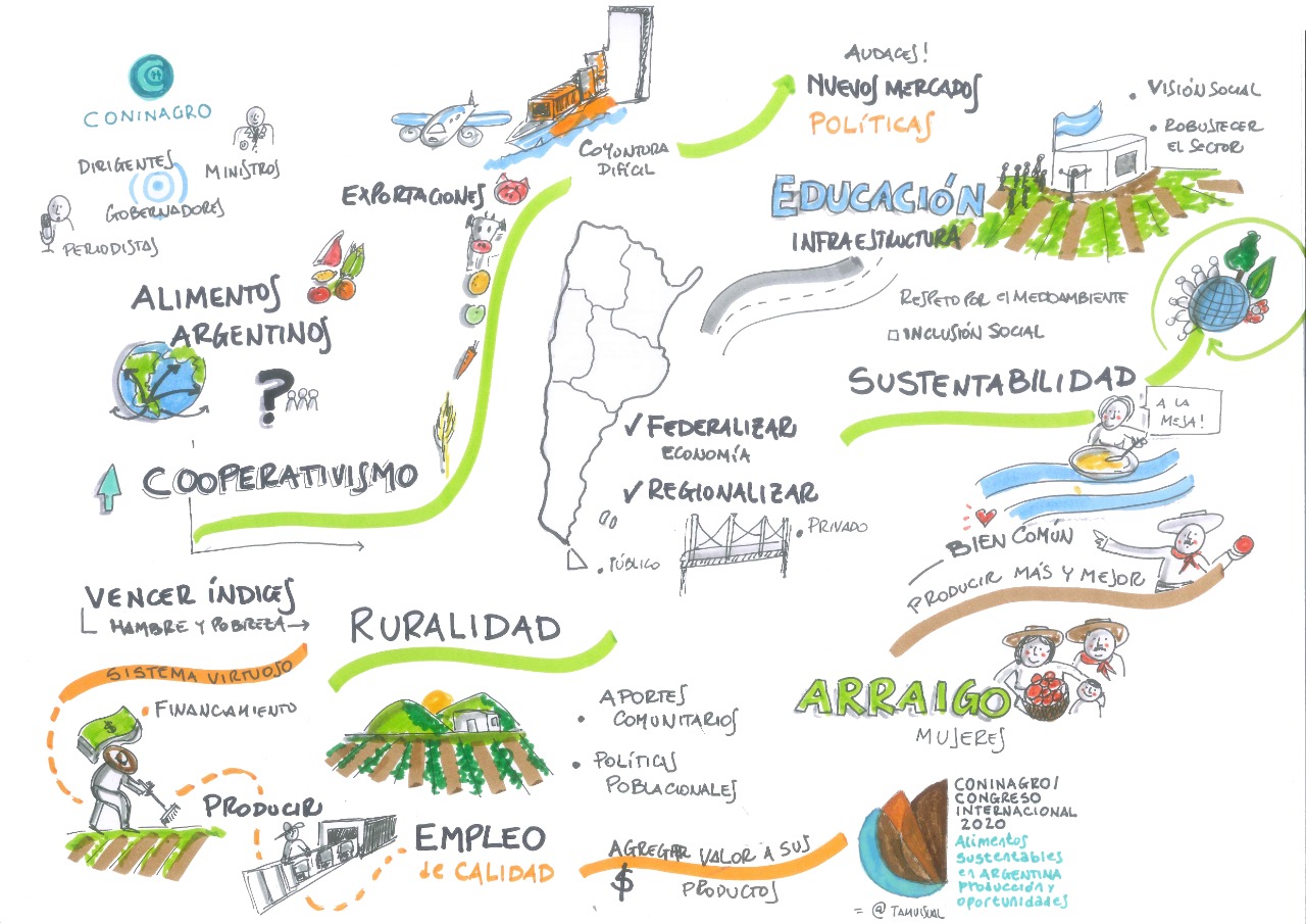 En el evento realizado por Coninagro, la facilitadora visual Tamara Kostetsky realizó un trabajo que resume los contenidos expuestos en el Congreso a través de un novedoso arte.