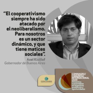 Uno de los bloques más potentes del Congreso organizado por Coninagro fue en el que intercambiaron conceptos los gobernadores de la Provincia de Buenos Aires, Axel Kicillof, y sus pares de Mendoza Rodolfo Suárez y Omar Perotti por la provincia de Santa Fe. A su turno, tomó la palabra Kicillof quien afirmó hoy que «en un contexto tan desfavorable y que generó tantos inconvenientes, se tomaron varias medidas, en primer orden declaramos esencial a la producción, es decir que es uno de los pocos sectores que se mantuvo trabajando durante la pandemia».