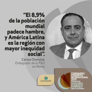 Por su lado, el Embajador Argentino de la FAO en Roma, Carlos Cherniak, sostuvo que: «es difícil encontrar un actor más federal que Coninagro. Mi primer trabajo fue en el cooperativismo, esos principios me acompañan hasta hoy en mi carrera profesional. La pandemia obligo a pensar en el tema de la alimentación de manera más transversal».