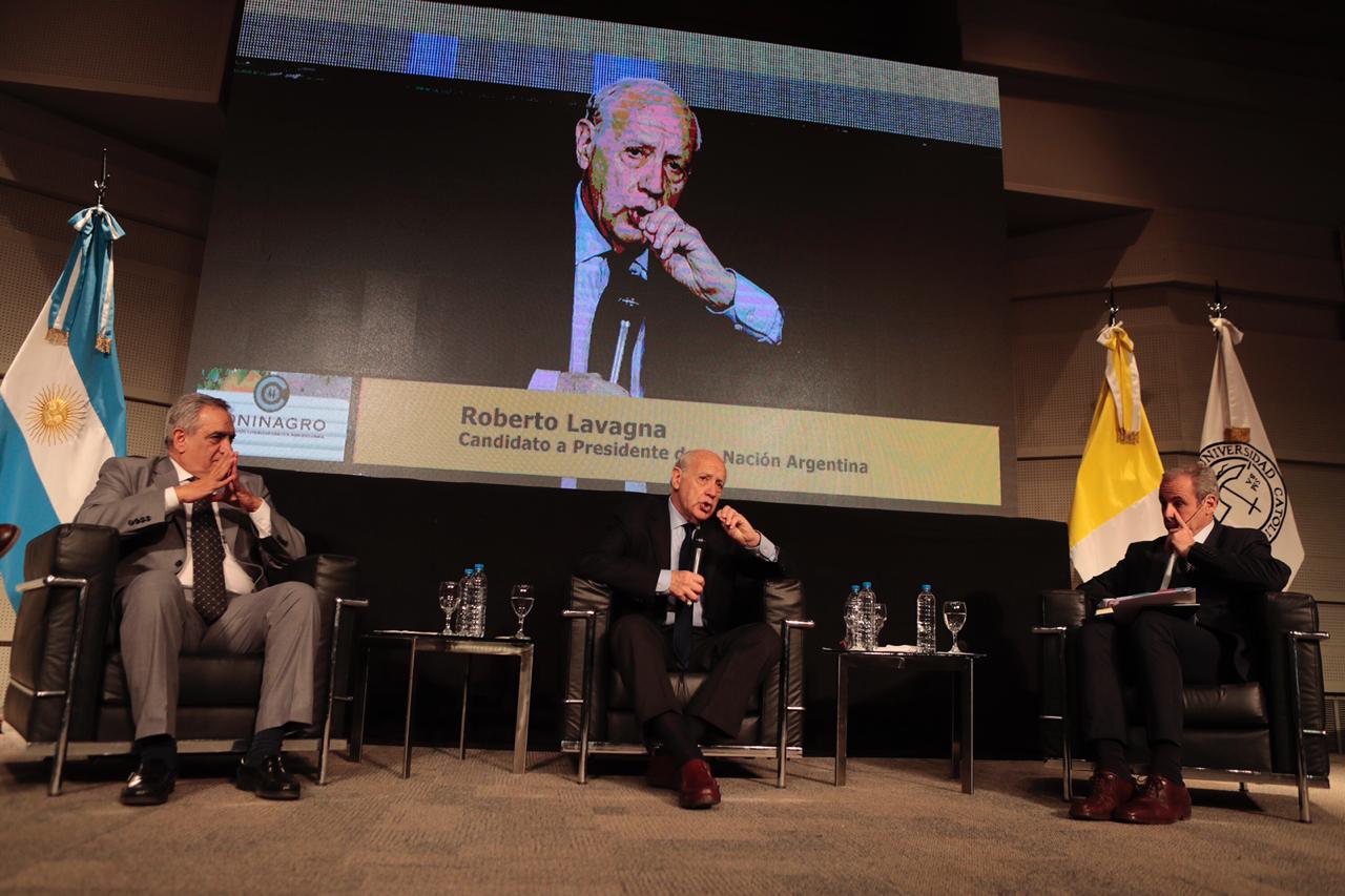En relación al esquema de retenciones, el candidato a Presidente y economista Lavagna, puntualizó: «con las retenciones hay que dejar de hacer demagogia, como dijo el Gobierno actual y de todas maneras las aplicó. Eso es un mecanismo de engaño; las retenciones son un impuesto bruto y grosero.»