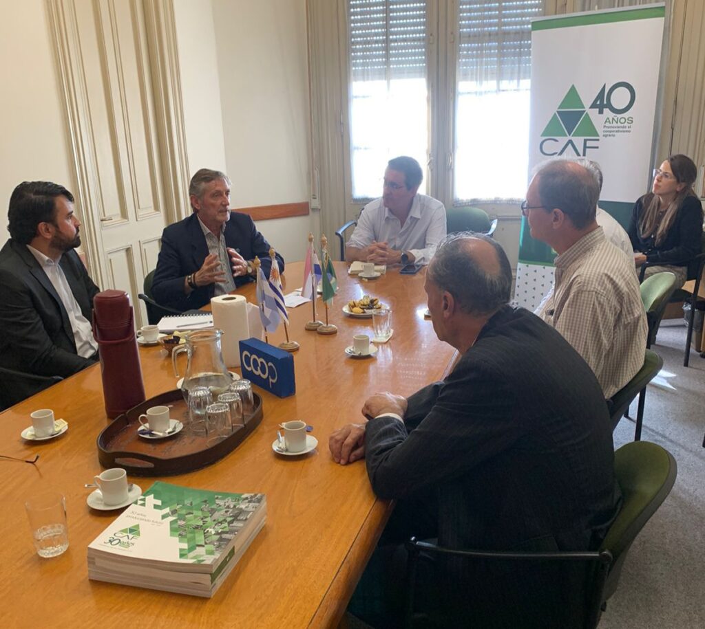 En el marco de los 40 años de vida de Cooperativas Agrarias Federadas se reunieron en su sede, representantes de Uruguay, Argentina, Brasil y Paraguay. Durante el encuentro por Cooperativas Agrarias Federadas (CAF) participó su Presidente, Sr. Pablo Perdomo; Secretario, Sr. Fernando Bide; Tesorero, Sr. Aparicio Hirschy; Gerente General, Sr. Luis Frachia. Por parte de nuestra entidad estuvo presente el Presidente, Sr. Elbio Laucirica; acompañado por el Gerente General Sr. Marcelo Espinosa; y el Apoderado, Sr. Octavio Bermejo. A su vez también por la Federación de Cooperativas de Producción (FECOPROD) su representante fue el Presidente, Sr. Alfred Fast, y por la Organización de Cooperativas Brasileñas (OCB) el Coordinador de Relaciones Internacionales, el Sr. Joao Martins.