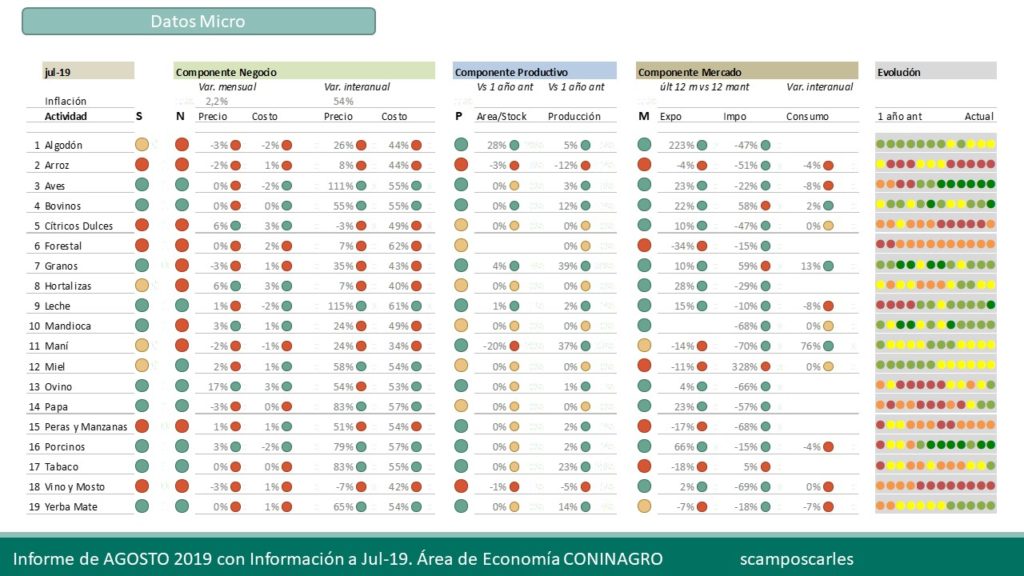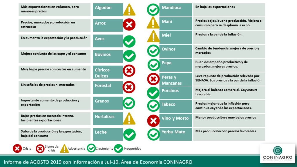 Semáforo de Economías Regionales de CONINAGRO – Agosto de 2019