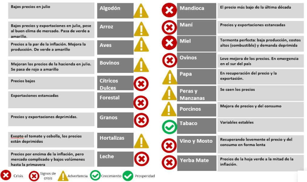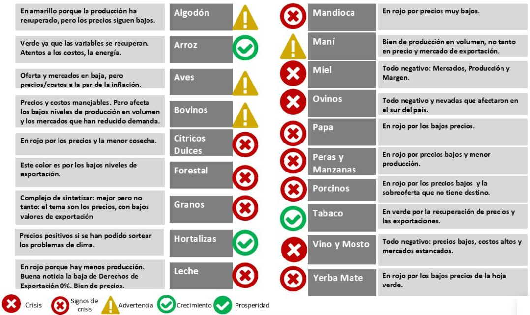 su stock crece o no respecto de la campaña anterior, así como los volúmenes de producción en toneladas.